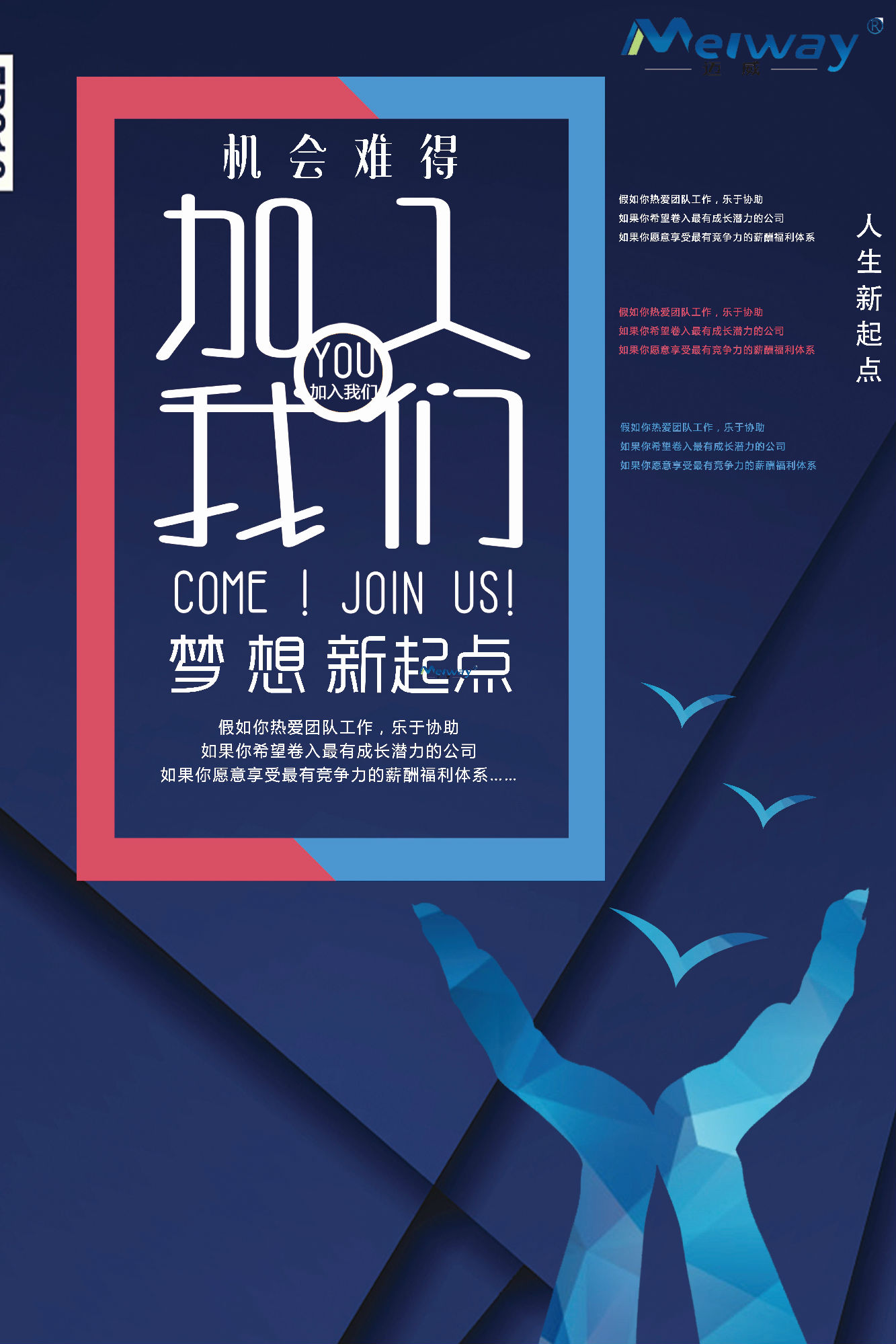邁威在飛速發(fā)展的同時,期待有更多的有志之士能夠加入到邁威,為公司注入源源不斷的活力,為實現(xiàn)企業(yè)的遠大目標而共同努力!